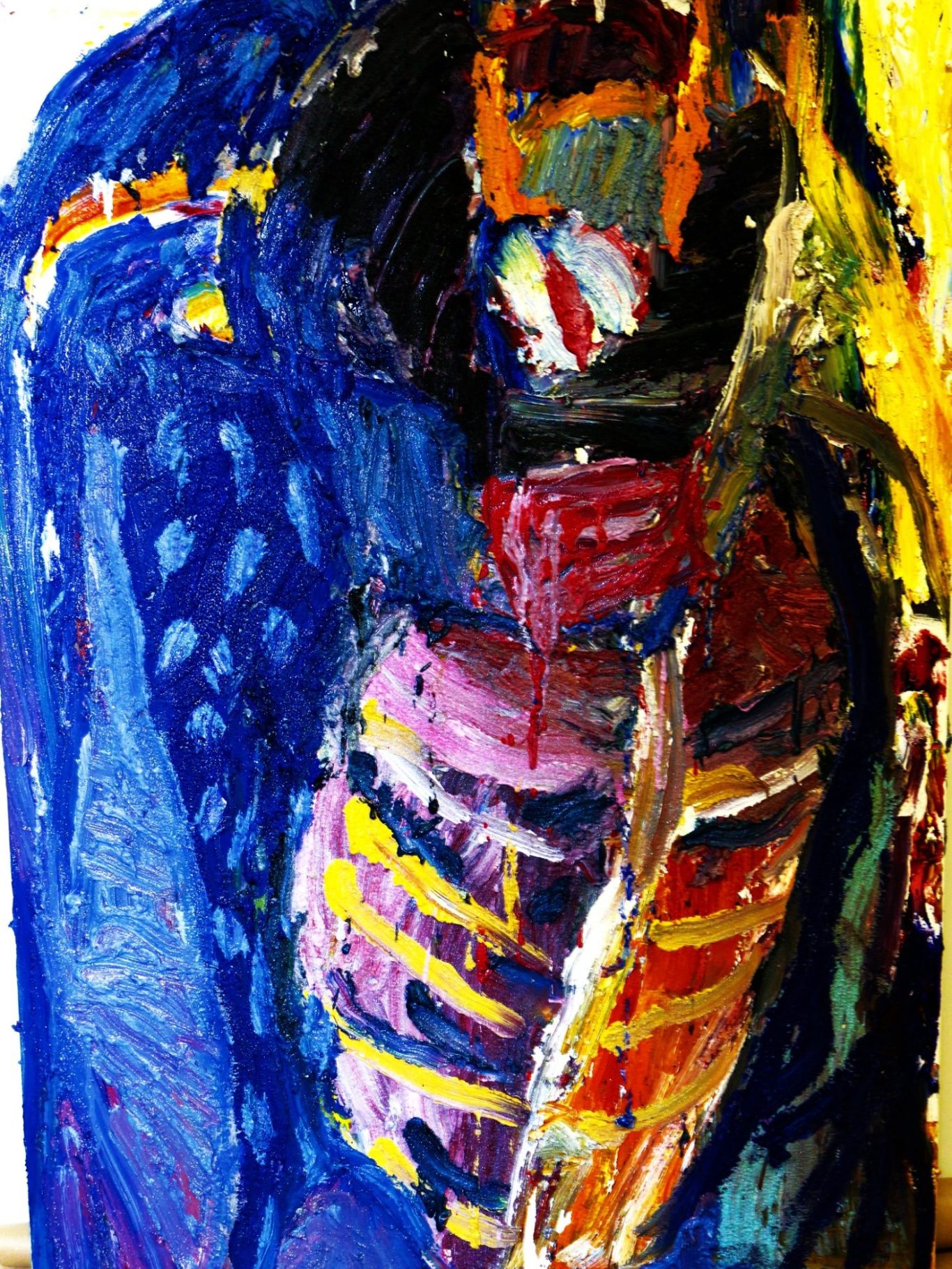 2014. Urtean Leitzeko gaztetxen margotu nuen hau, hango gela estudio batean, bertan beste hiru olio pintura margotu nituen. Serie hau beti izan dut gogoan. Kolore tonuen nahasketarengatik eta neretzako lehenengoz halako textura eman niolako gorputzeko aldeari. Askatasunaren sinbolo baten antzera, nire intentzioa, izpiritu aske honekin, nire artelanetan asko aipatuko dudanaren funts ala sustantzia arrapatu nahian, aske izatearen konzeptua abstraitu egiten bazitzaidan, sinetsi izan dut denbora asko niretzako hartu badut, nire denbora ia osoa niretzako izan dudalarik, askeago egiten ninduela, denborak, ze ezagutza ez bada