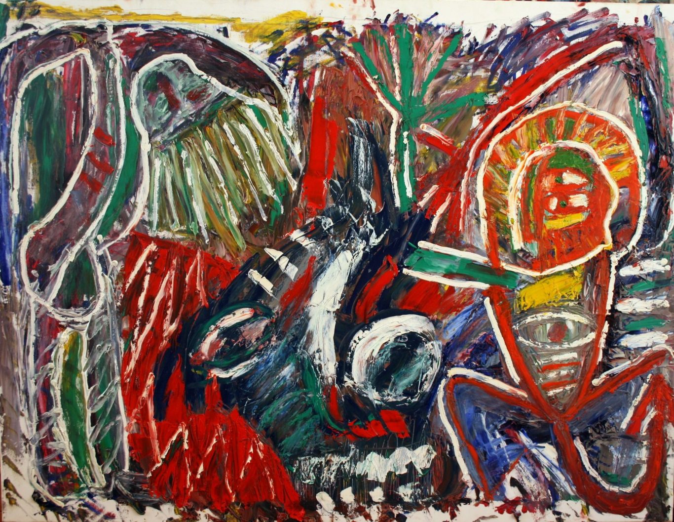 Lientzoaren goiko aldetik hasi nintzen margotzen, ez nuen ideia argirik eta margotzen nuena abstraktua zen. Halako keinu batean buru baten itxura hartu nion, zezen buru batena. iada hor nuen, Minotauroa.